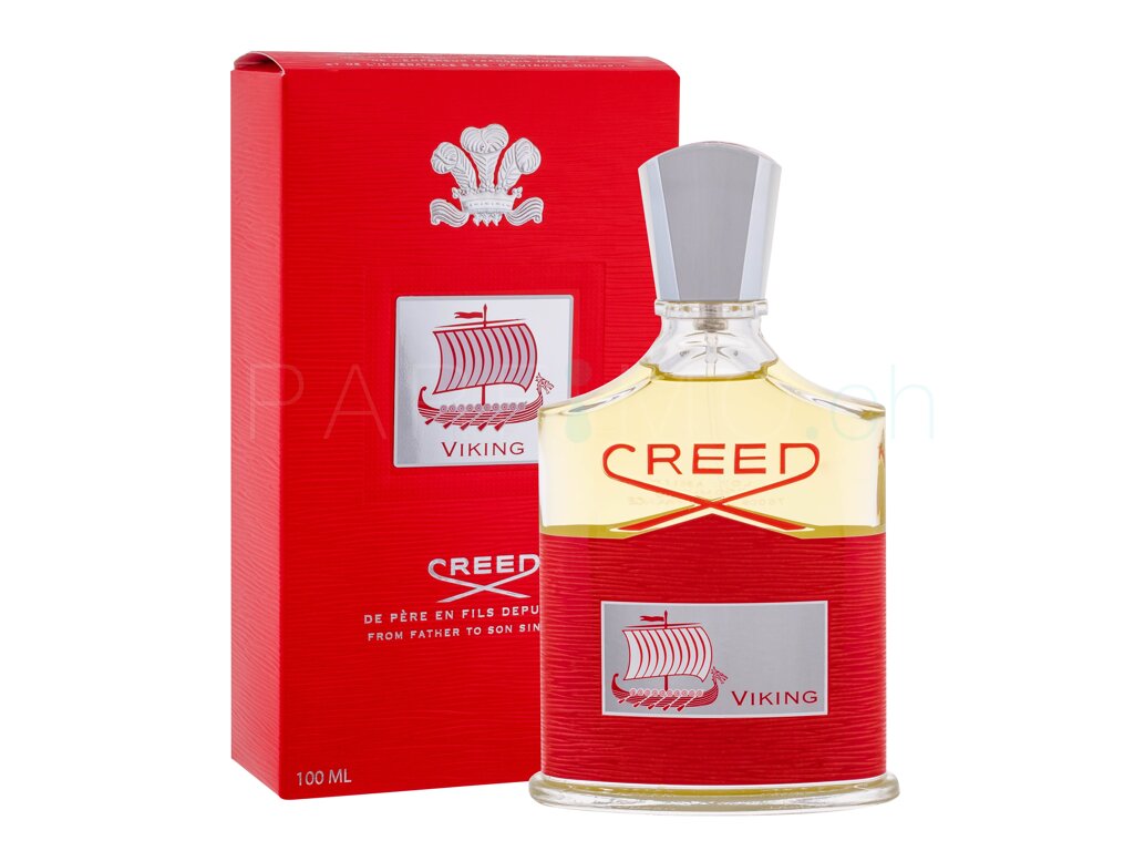 Der Duft Creed Viking in einem grellroten Flakon, auf dem das Schiff der Wikinger abgebildet ist, ist zum ganztägigen Tragen zu Tagesanlässen sowie Abendveranstaltungen geeignet. Das Parfum ist am besten für die kalte Jahreszeit - den Herbst, Winter und Frühling. Laut Kundenrezensionen erhebt das Parfum bei schlechtem Wetter Laune. Viking ist der Nachfolgeduft des kultigen Herrenparfums Aventus aus dem Jahr 2010, der sich auf Ananas-, Birken- und Moschusnoten gründet - Das Parfum hat das gleiche Design, nur das Grau hat in diesem Fall das Rote gewechselt.